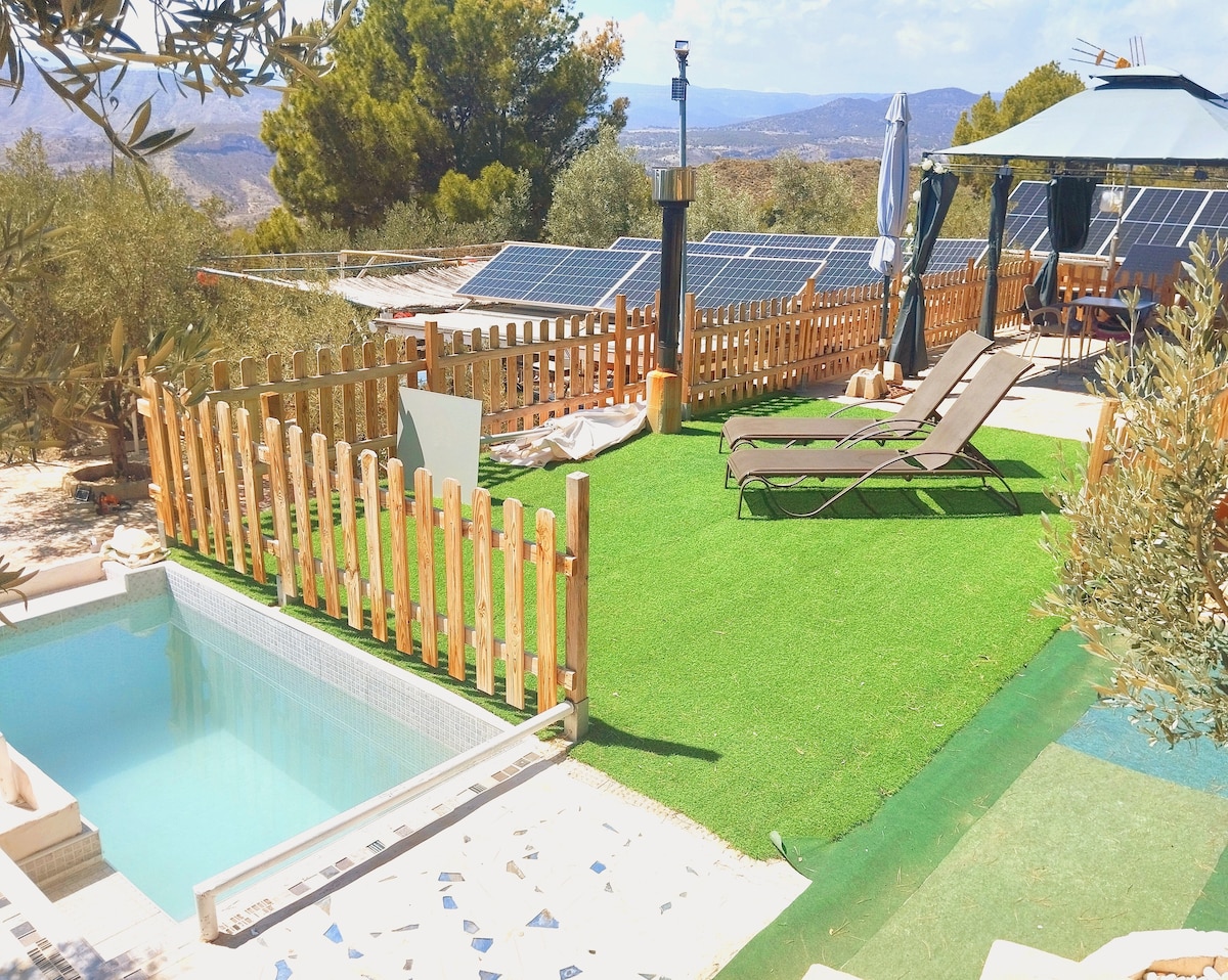 You'll love this unique, romantic or family escape. Our refurbished stone tiny house has loads of character, it's located next to the famous castel of Guadalest & the moutain views from the plot are breathtaking. Access is very easy next to the road cv-70, and you can fully disconnect in nature, discover this authentic region, do walks, kayak at the lake, cycle, eat at many local restaurants etc. We have a huge wood pergola, water from citern, solar electricity with 5kw batery, 2 showers.