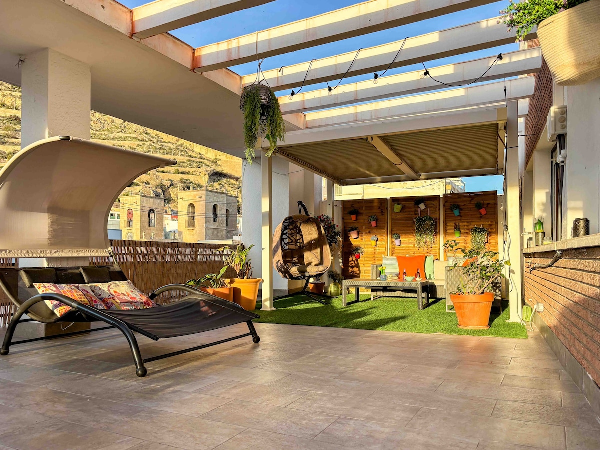 Beautiful penthouse loft in a 19th century building that has been completely refurbished. It has a large roof terrace with unbeatable views of the city and vegetation, with direct access from the living room by a Japanese staircase with alternating tread. Located in the old town where you will find the best atmosphere of restaurants and trendy bars. The Postiguet beach is 500 m away (7 minutes walking). Ideal to enjoy the city on foot, the beach or the mountains.