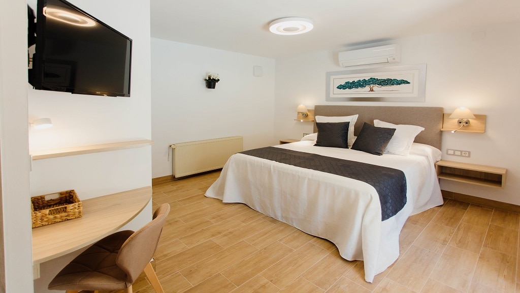 Rum nr 2, 28 kvm 1 trappor upp (utan hiss ) ett av våra finaste rum med med två enkelsängar sängar 90x190cm som antingen kan placeras som dubbelsäng eller var och en för sig som enkelsängar. Rummet har en liten balkong mot gatan, eget badrum med värmegolv, AC för värme och kyla. Huset är centralt beläget i Cocentaina nära, Palacio Comtal och stora torget, Plaza Vener Escuder med Mercat Municipal. Där även de lokala marknaden är varje torsdag. OBS! då råder parkering förbud från onsdag kväll.
