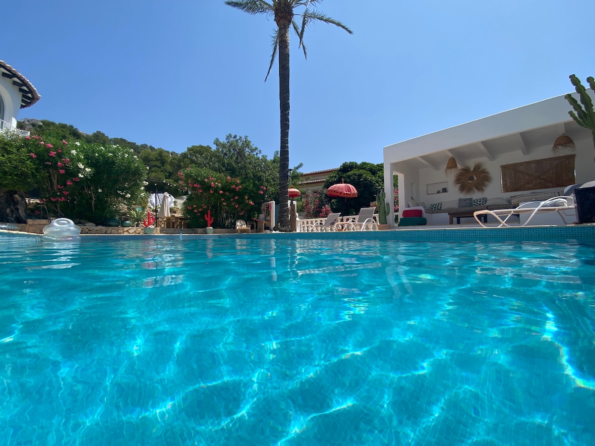 En este alojamiento se respira tranquilidad: ¡relájate con toda la familia! Chalet independiente privado. Totalmente nuevo, esta casa está pensada y diseñada para el mejor confort y con todos los detalles de primera calidad, muy bien decorado con terraza cubierta, cocina exterior,barbacoa,piscina con jacuzzi y parking privado. A 2 minutos un parque para niños y a 15 minutos andando de supermercados y playas. Muy cerca de las mejores calas de Jávea,restaurantes y rutas de senderismo