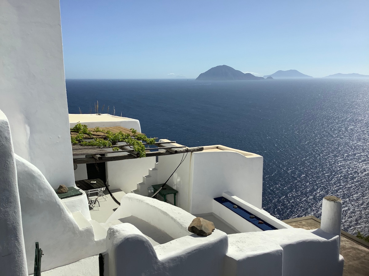 Perfectly preserved ancient Aeolian house. All rooms overlook the large terrace with a breathtaking view of the other islands and the Sicilian coast. You will find unspoiled nature, silence and privacy. Alicudi has no roads but stairs and one moves only by foot. Our house is located 150 meters above sea level, to reach it you need to climb 400 steps. It takes 15/20 minutes uphill and 10 downhill. A mule can carry your luggage and shopping.