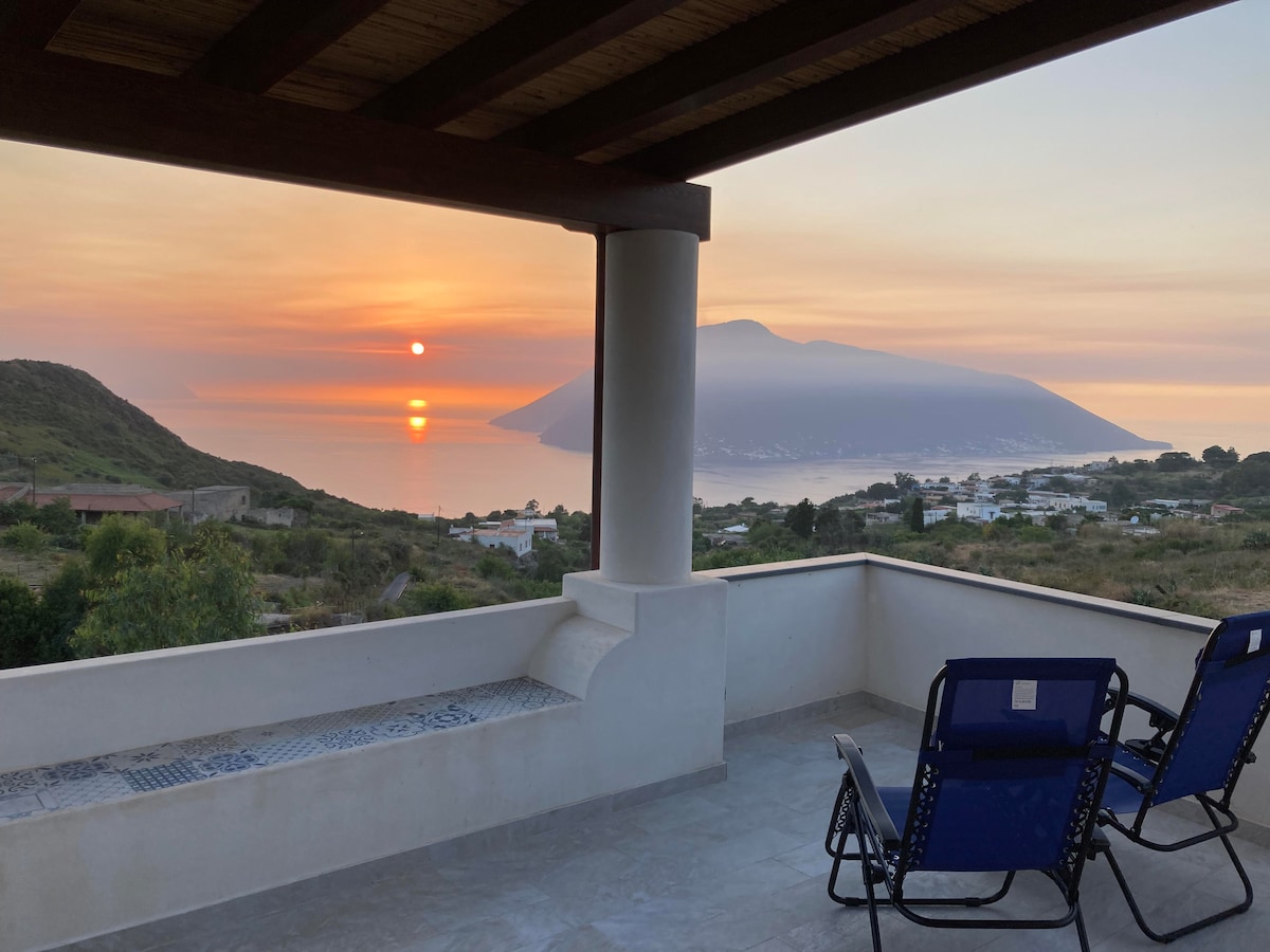 tipical aeolian house with sea view and sunset. private swimmingpool. ideal location for those who love nature, for those seeking privacy, walking, trekking, reading a book on an hammock. there is a gas barbeque . WI FI private use of a barrel sauna with a wood oven , typical finnish sauna . wood hot tub
