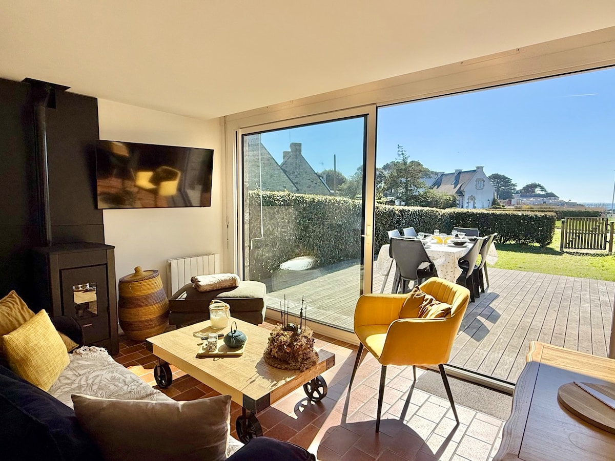 Face à la mer, adorable maison de 70 m2. Idéale pour un séjour en couple (ou 4 pers grâce à la banquette-lit) Face à la mer et à 200 mètres des commerces, la maison est idéalement située. Profitez du jardin ou découvrez le charme du Golfe du Morbihan, ses plages, îles, sentiers côtiers ainsi que les villes de Vannes, Auray, … Et si le temps est frais, profitez du poêle dans la soirée. Je serai ravie de vous accueillir, vous présenter les lieux et partager quelques bonnes adresses locales.
