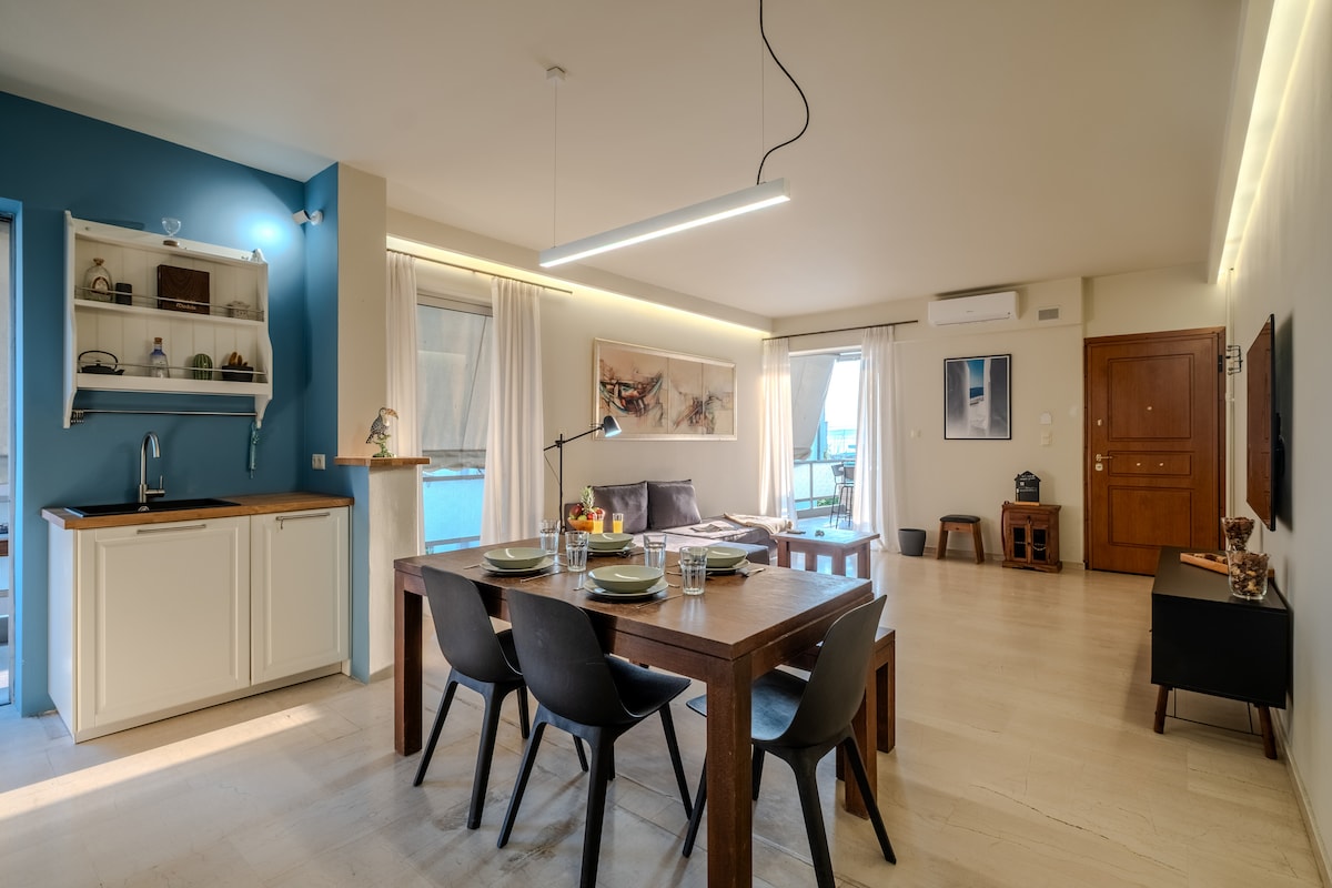 Modern apartment fully renovated, 70 sq.m. with 40 sq.m. garden in the heart of South Athens, just 2km from the spectacular beach of Athens Riviera and 1300 meters from the Alimos Metro Station (10mins Acropolis). This residence is located in a peaceful neighbourhood, perfect for families and couples. Fully-equipped kitchen, Smart TV with Netflix subscription, high speed WiFi, fully-equipped bathroom, one superior bed for two, sofa bed for two and single portable bed.