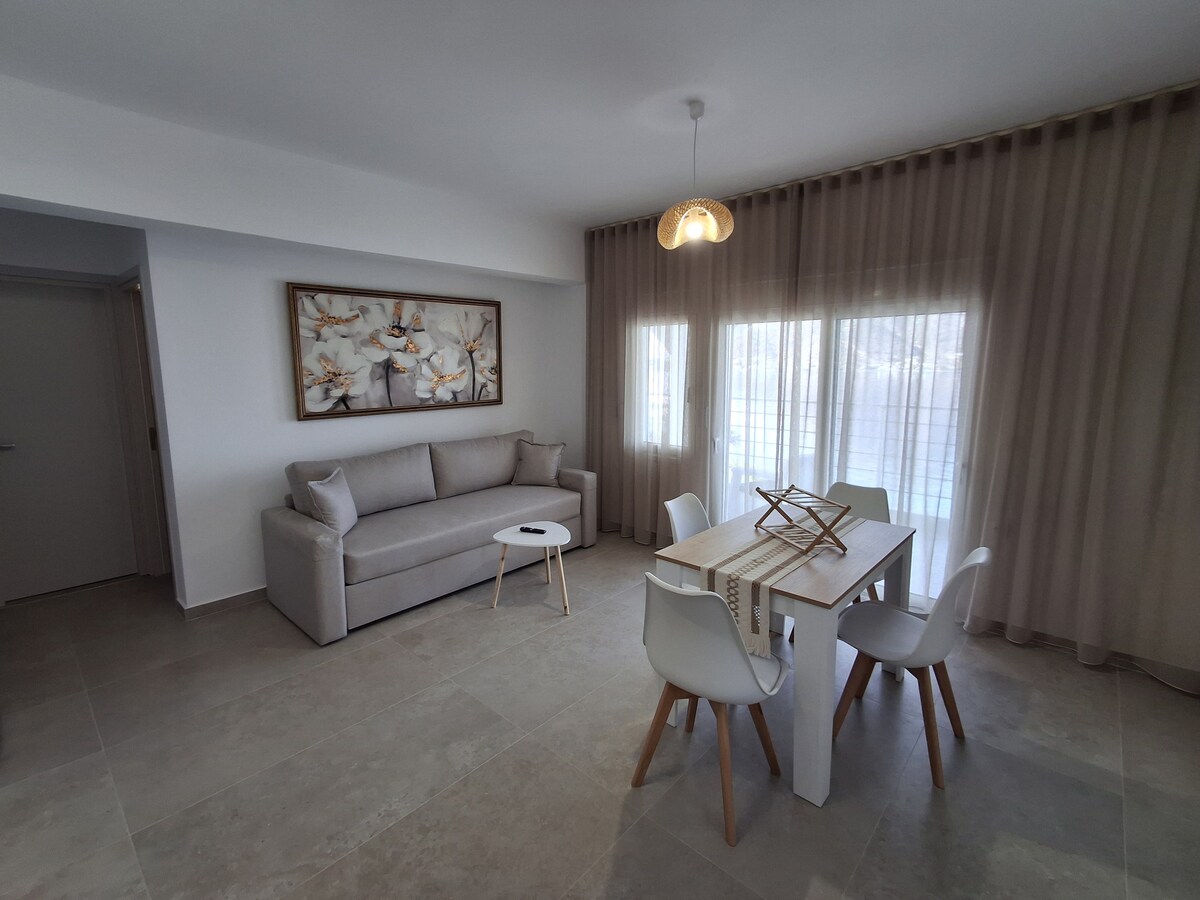 Meet us in our complete new apartment in the heart of Armeos in Masouri...it have everything you need for the best summer or winder holidays!!A full complete apartment with a large kichen a big double bed and a sofa that open and become a nice and comfortable bed for one more person,toilet,and a large balkony with the best sea view in Telendos..You can relax and wach the amazing sunset at Kalymnos!!Give to your self the magic stay at Kalymnos!!See you there!