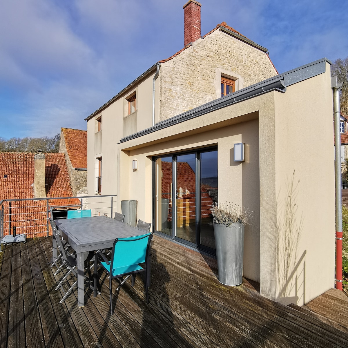 En plein cœur de Semur, cette ancienne maison de vignerons de plus de 130 m² conjugue charme et histoire avec ses tommettes d’époque, ses poutres apparentes et ses murs en pierre authentiques. Sa vue dégagée sur les tours médiévales, le pont Pinard et l’Armançon est sans doute la plus belle de la ville — vue imprenable également depuis le jardin… Spacieuse, confortable et idéalement située, elle accueille familles, couples ou séjours entre amis. Jusqu’à 10 personnes sur demande