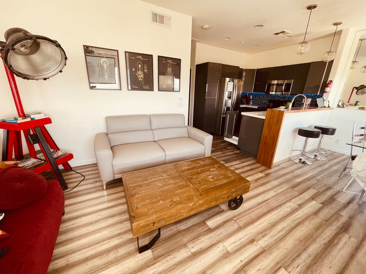 Nothing less than a SPECTACULAR, private, serene apartment HOME. KING Bed. Sleeps 2 comfortably. Sleeping in couch is optional. Full shower/tub. Approximately 725 sq. ft. A 65” Smart TV in the living room. In unit Washer/Dryer (detergent). Full kitchen with everything you need for a short or long stay. Refrigerator with ice maker. FAST WiFi. Shared pool, jacuzzi and gym. Completely sanitized and clean. One assigned parking space. Please come in peace or don’t come at all. Enjoy
