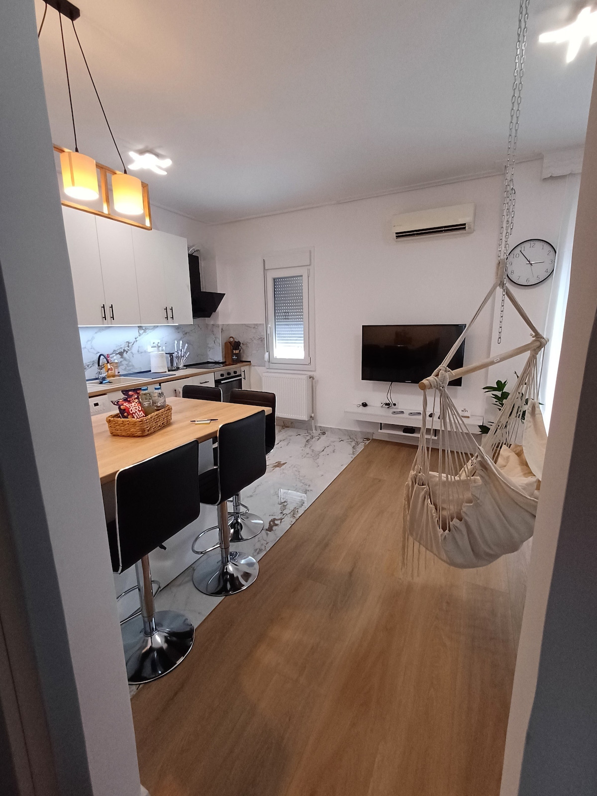 Its a modern renovated apartment, fully equipped, with brand new furniture as well as kitchen appliances, waiting for kind guests. Also, It has a small back yard where you can relax and enjoy your coffee and maybe a cigarette among the plants. The neighbourhood is very quite and it literally 5 minute walk to center. You can find some stores nearby such as food stores, coffee house, bakery, patisserie and tavern. The parking is public, safe and free just in front of the apartment.