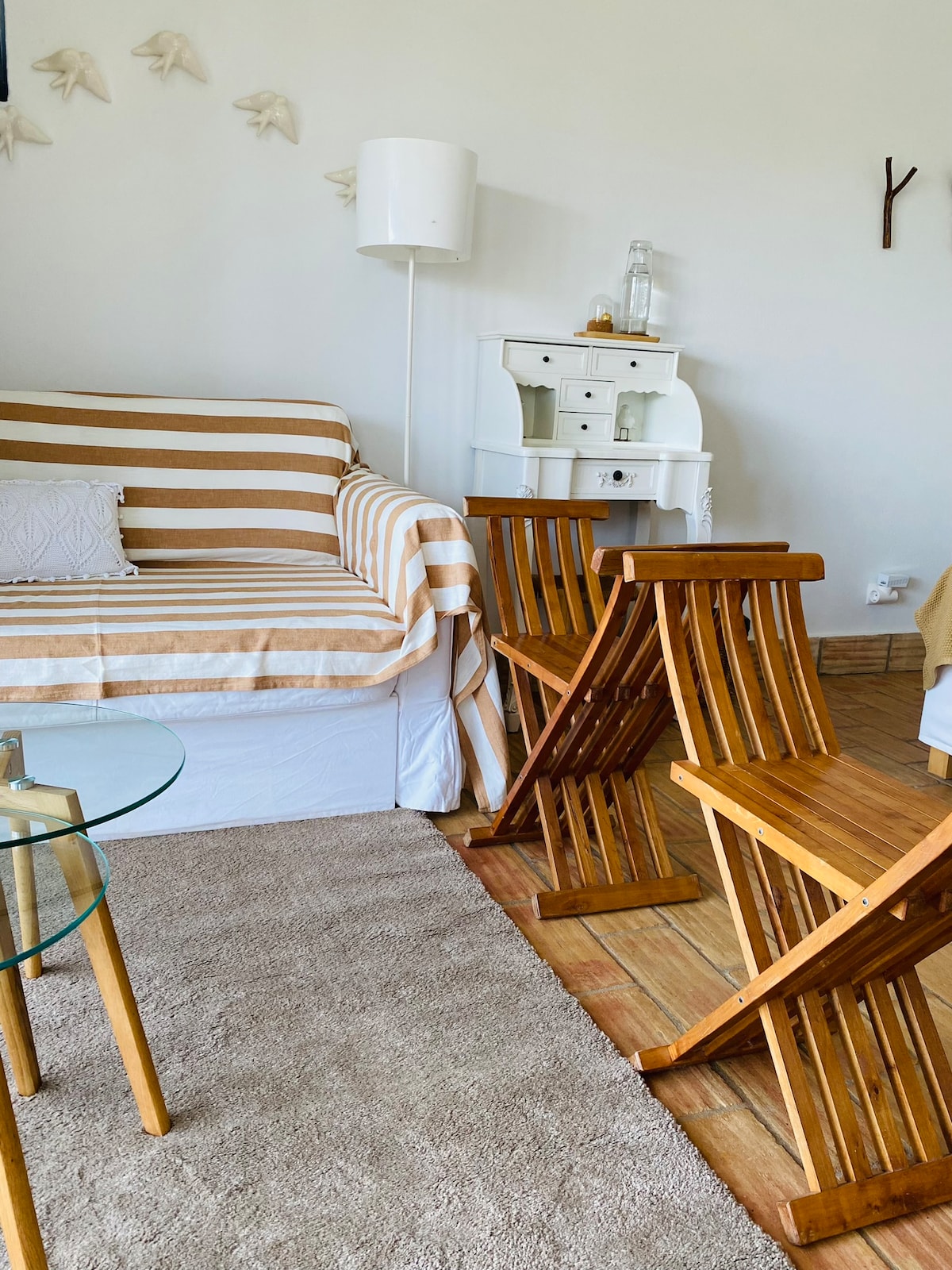The guest bed was lovingly crafted from driftwood by a local carpenter. The room offers direct access to the terrace and garden. The bathroom is modern and furnished to a high standard. We are open for you all year round :) We are very much looking forward to welcoming you to this little paradise under the Portuguese sun in a family atmosphere! For those who wish to work :) – we have Starlink.