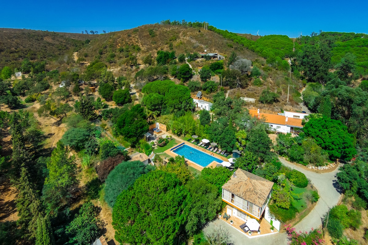 Escape to our private and sustainable villa, nestled on a panoramic hill in nature overlooking the valleys. Take a dive into our fresh mountain river. Walk pristine nature trails in every direction. You’ll love the cottage charm, the stars, the calm, the meditating sound of the passing river, the buzzing wildlife, adventure and the wild surroundings. Located just 6km to Odeceixe village, and around 10km from award winning beaches. The perfect holiday let for couples and active families.