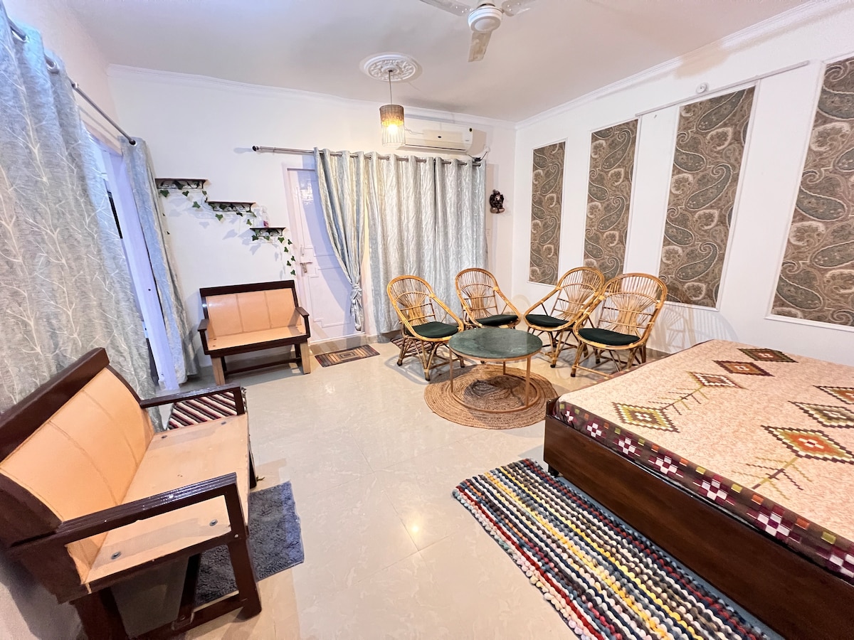 Maitri (मैत्री) represents friendship, comfort, and a sense of ease. • Located in a calm yet central part of the city, this thoughtfully planned studio is bright, clean, and comfortable. • Large windows bring in natural light, and the simple, uncluttered design keeps the space relaxed. • Ideal for couples, solo travellers, or work stays, it offers privacy and quiet without feeling cut off. Maitri is meant for slowing down, settling in, and enjoying a peaceful stay in the city.