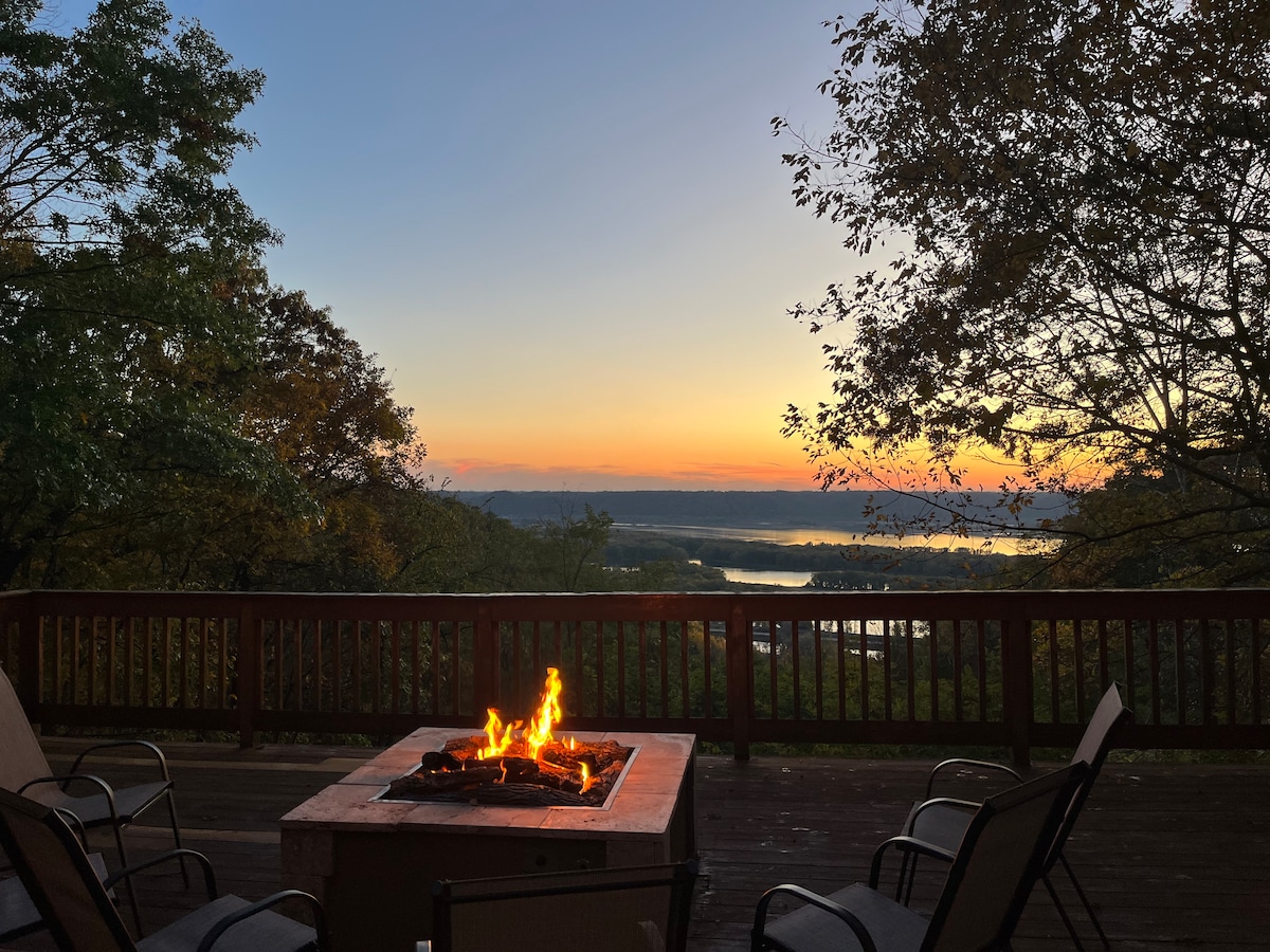1 bedroom 1 bath with loft. Cozy home where you can see Paradise. This memorable place is anything but ordinary. Views for miles of the Mississippi River, bluff tops and you can soar with the Eagles. What a place to relax in the newly added hot tub while you enjoy the view in what is call "God's Country". This is promised to be a one of a kind view. The Deck with comfortable outdoor seating Located in the heart of WIsconsin's Driftless Region. New workout center for all our guest to use.