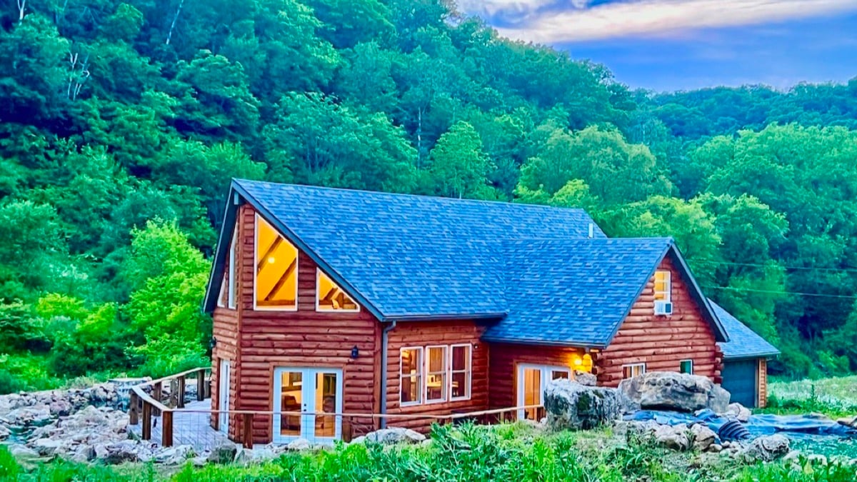 Experience nature and simple living without forgoing modern amenities at this secluded cabin tucked in the heart of the Wisconsin Driftless area. The details of the original log cabin have been preserved and reimagined to create an attractive modern + rustic design. The 10-acre property features a private stream, rolling hills and wildlife viewing opportunities. Explore the serene landscape with nature walks, or enjoy the view from the comfort of the hot tub.