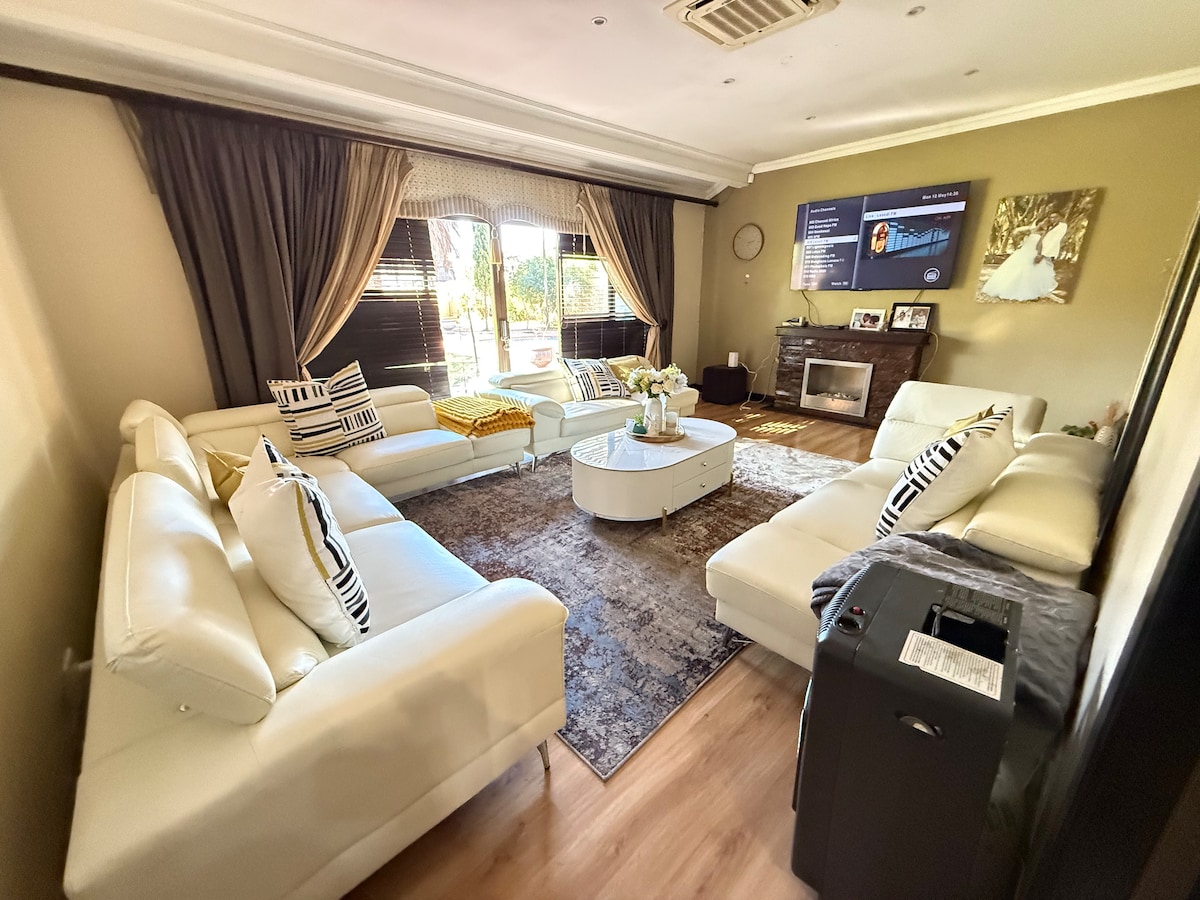 Enjoy a stylish experience at this centrally-located place. A very modern 3 bedroom house with a parking lot that can accommodate 6 cars max, 2km to town , Checkers shopping centre 300m away.