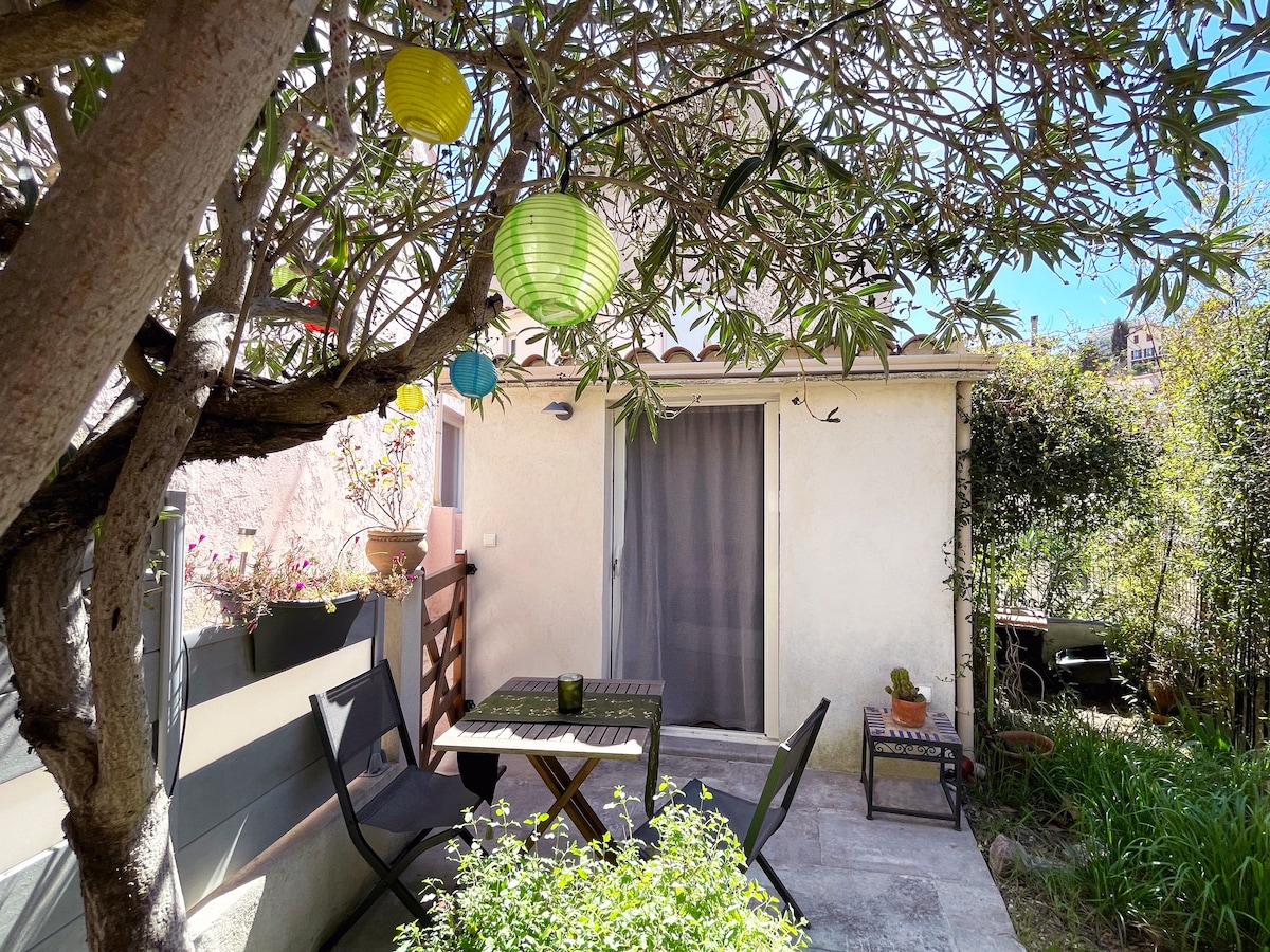 Petit studio de 12 m2 avec grande terrasse privative aménagée de 24 m2, très agréable pour les beaux jours Idéalement situé à 10 mn à pied de la gare Capacité 1 personne ou bien un couple La terrasse comprend : - un salon de jardin - une table avec des chaises - un barbecue Le studio comprend : - une pièce de 10 m2 tout en longueur avec : . Un BZ ( 140 x 190 )et coin cuisine - une salle d’eau de 2 m2, avec douche, lavabo , wc Studio accolé à ma maison et situé dans ma résidence