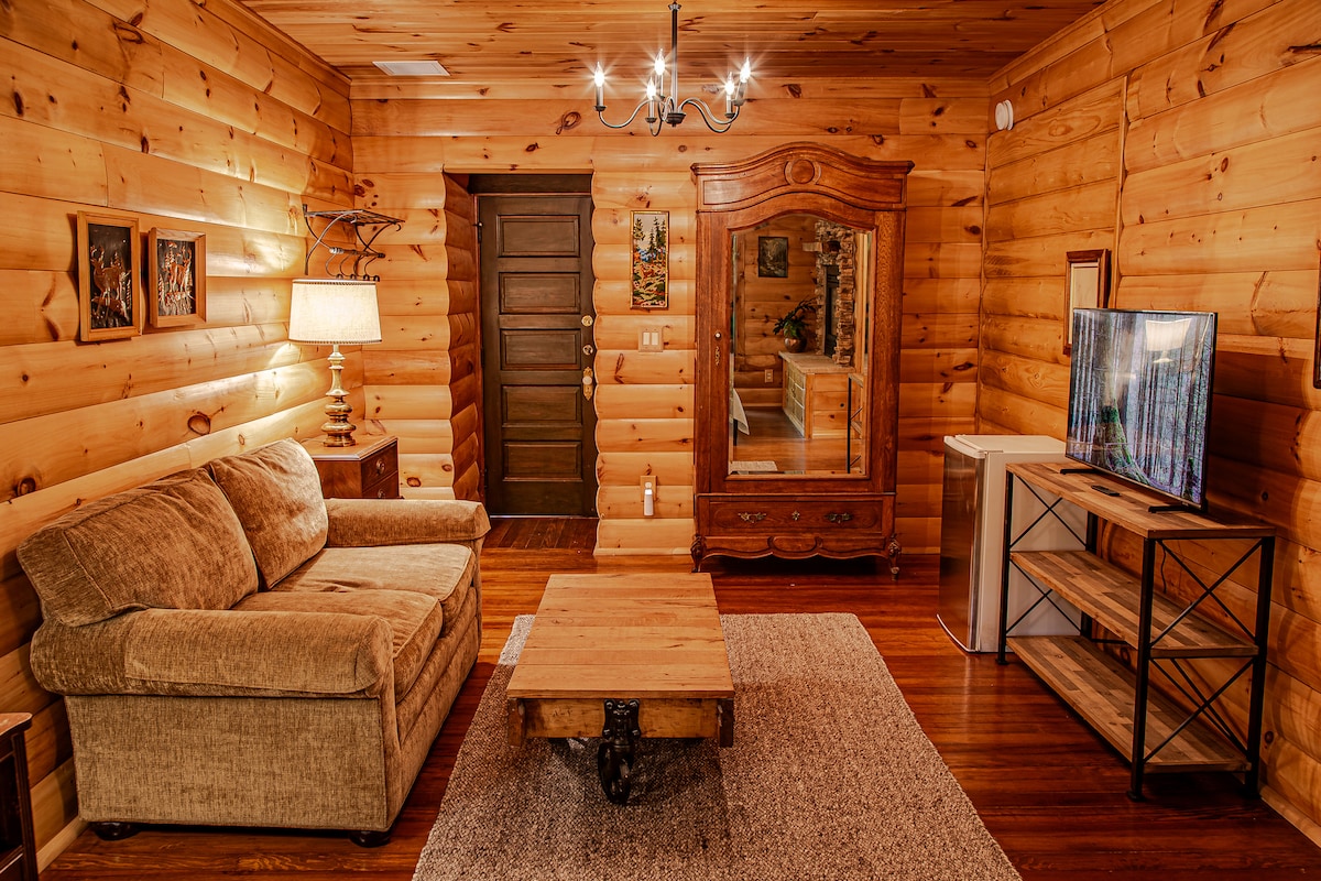 This spacious one bedroom cottage is suitable for 1-2 guests. The Dixie cottage has heated floors throughout, a kitchenette complete with microwave, mini-fridge, Keurig, toaster, & dishware, a furnished screened-in patio, living room with Smart TV, and spacious bathroom with walk-in shower. Plush linens, toiletries, coffee, and bathrobes provided. Outdoor courtyard with natural gas firepits and grills, guest laundry, and access to seasonal pool & hot tub included.