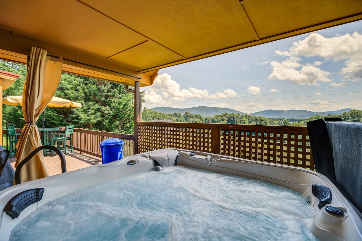 Step onto the spacious deck and breathe in the crisp mountain air as you take in the breathtaking vistas stretching before you. As the sun sets, gather around the crackling fire pit with friends and family, sharing stories and roasting marshmallows under the starlit sky.