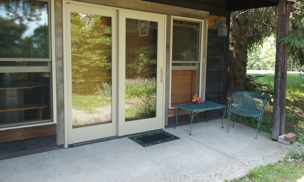 The guest cottage is a studio apartment adjacent to the garage, separate from the main building on the grounds of a functioning Zen meditation center. Detailed in keeping with the nature of Zen practice, the tatami mat flooring is very comfortable to the foot, and sunlight fills the space. Natural bamboo blinds can be drawn for privacy. A fully functional kitchen & bath with an outdoor patio are ready for your use.