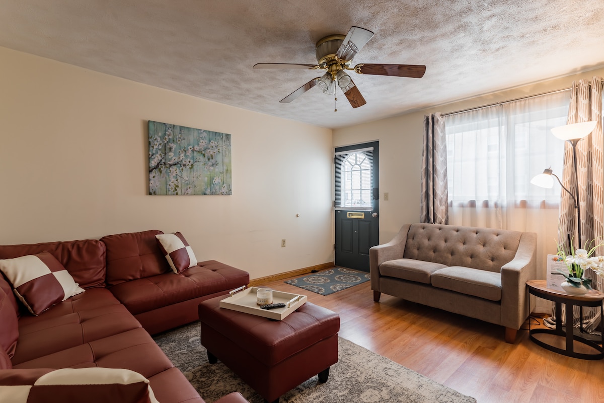 Welcome to our cozy guest house, conveniently located near the Pittsburgh Airport and only a 15 minute drive from concert venue Pavilion at Star Lake! Our charming accommodation is attached to our welcoming residence, offering a private and comfortable stay for up to two guests. The space is thoughtfully designed, featuring a well-equipped kitchen, furnished living area, and a bedroom with a plush queen-size bed.