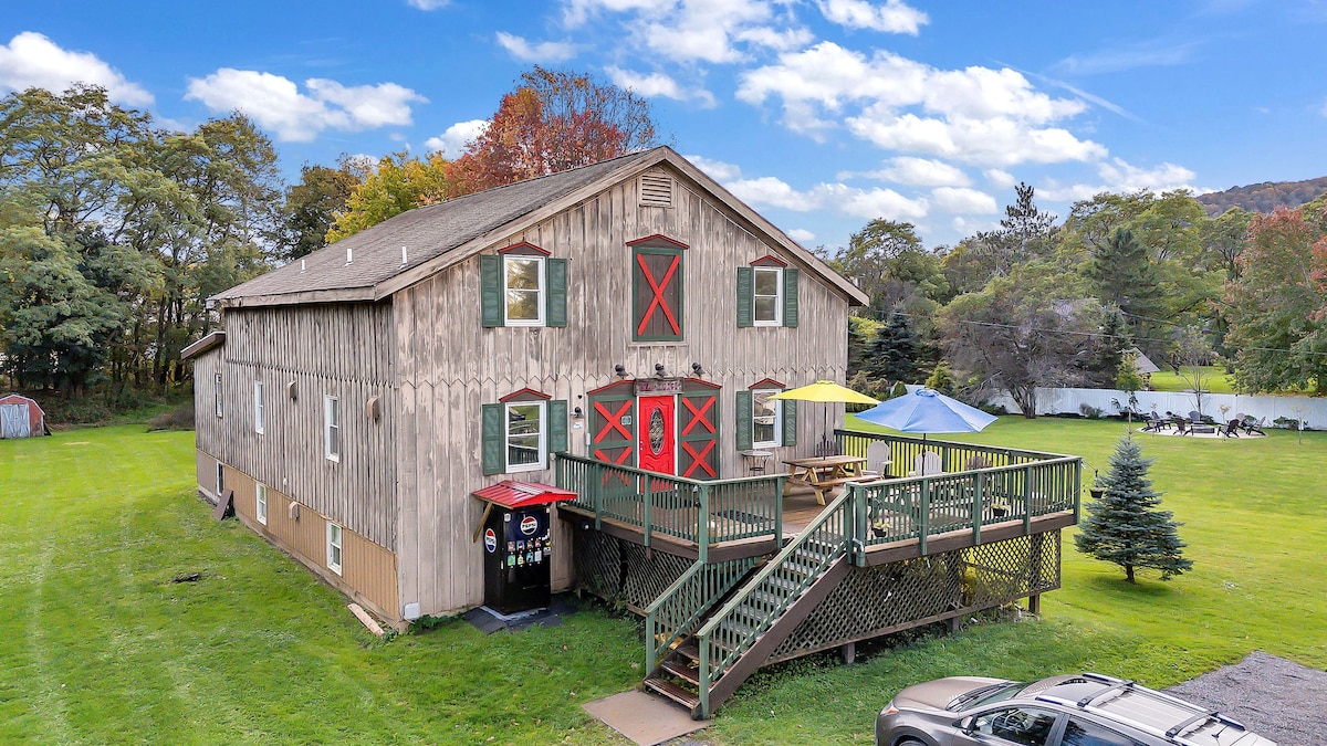 ➤ Welcome to Timberline Lodge - Walk to Downtown Ellicottville! ★ 3-5mins drive to Holiday Valley & HoliMont Resorts ➤ On the 3rd Level, this Spacious room features a queen bed, mini-fridge beneath a 43” Smart TV (Netflix ready), & free high-speed Wi-Fi. • This private room has a Queen bed & a full size Bunk Bed with fresh linens • En-suite full bathroom with amenities & extra towels • Rooms are always clean & ready for arrival. • Ideal for ski weekends & great-value all season short stays