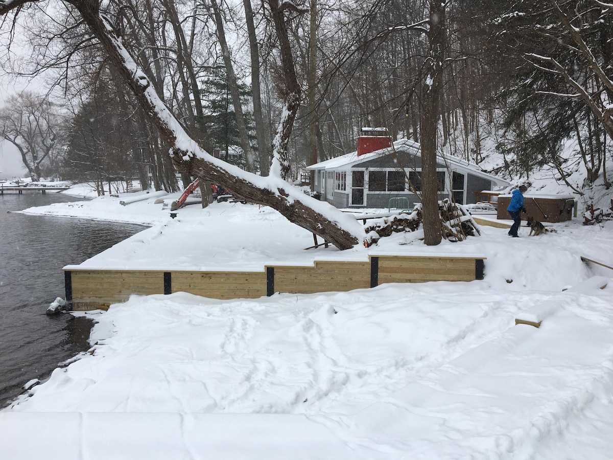 We built the summer cottage in 2006, for a summer home stayed on. We lived in the cottage 8 years when we wanted a bigger house. We love it year around. We are isolated with 3 neighbors (not close) and the river at our front door. Good boating, kayaking, canoeing, paddle boarding, fishing, swimming , hiking, bird watching (with a eagle nest across the river). December through February, it is best if you come with 4 wheel drive. Having said that , we keep the road plowed and the hill sanded.