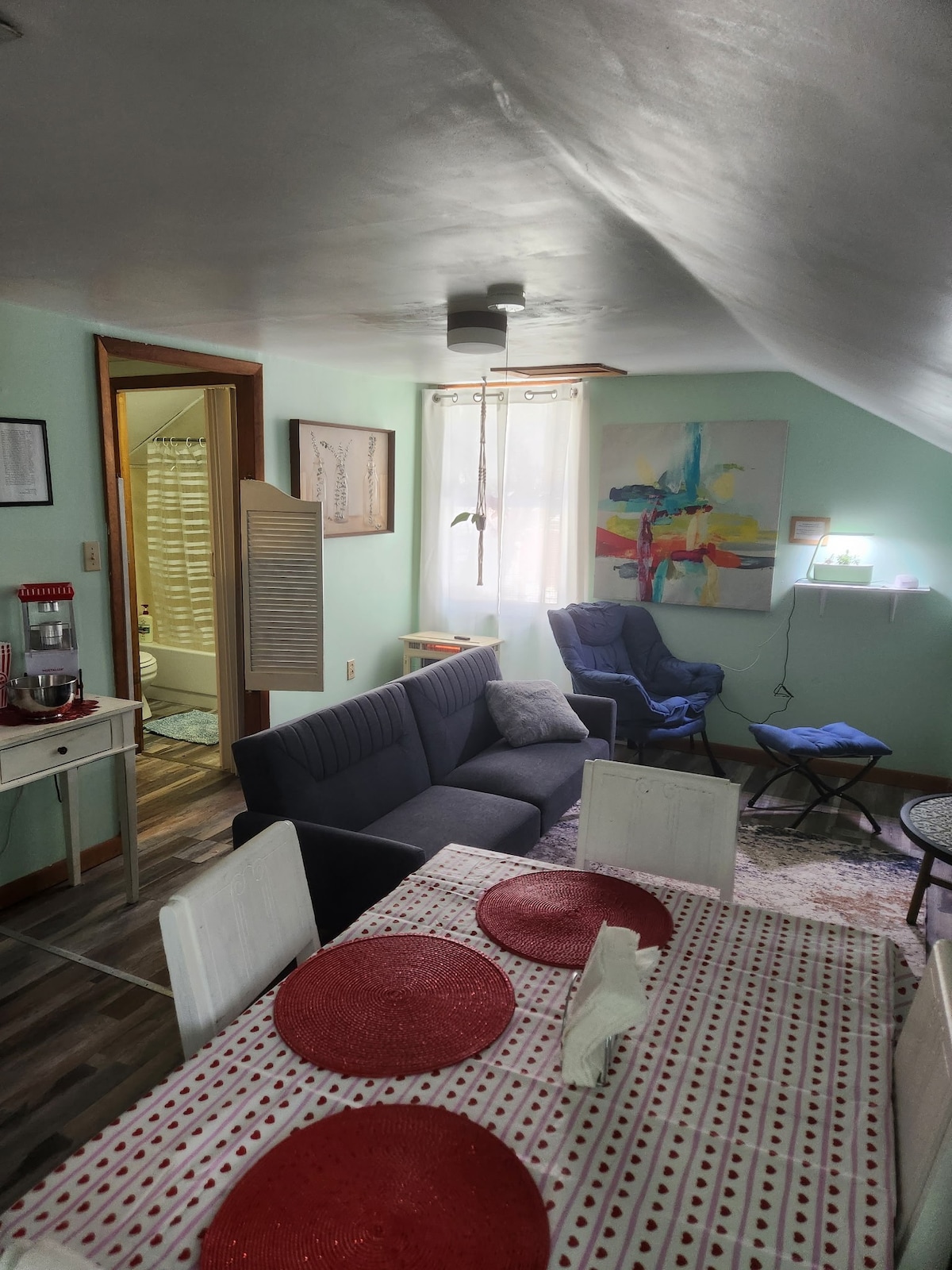 Perfect for your comfortable and connected stay. 1 mile walk or drive to downtown, .4 Miles from Clarion University, minutes from Interstate 80 and the Clarion River, and 20 minutes from Cook Forest. This private entrance house includes a spacious eat in kitchen, full living room, full bath, washer and dryer, and spacious bedroom perfect for overnight, week, or long term stays. Enjoy the privacy and comfortability of your own place with same property access to hosts for any of your needs