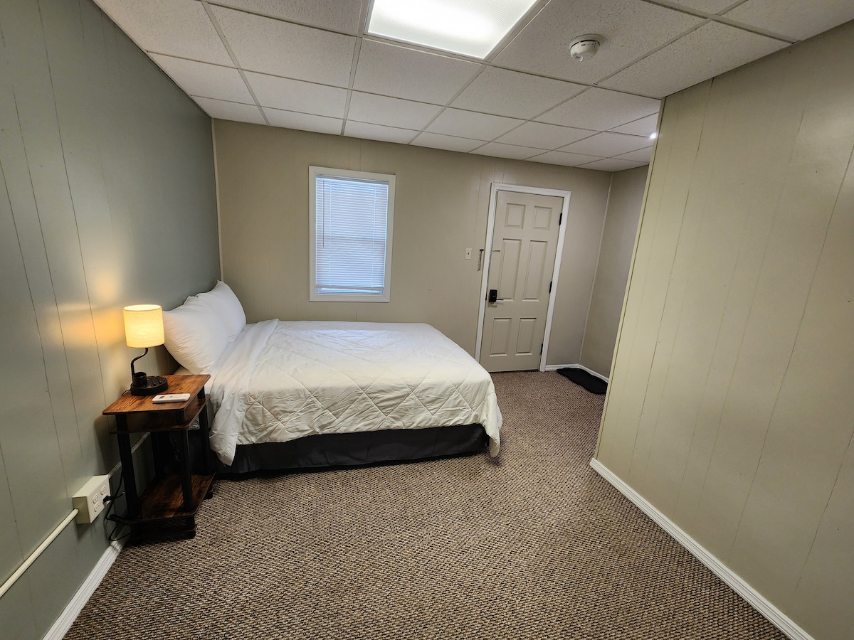 You won’t want to leave this charming, one-of-a-kind place. Located on the 2nd floor of the Main House at The Pines Motel & Cottages - this one bedroom suite has everything you need to unwind and recharge. The suite has a living room and a bedroom with a queen bed. For those traveling for work - there is a desk available for you and high-speed Wi-fi. The suite also has a record player with a diverse selection of records for all listening tastes. Music focused books and magazines to enjoy.