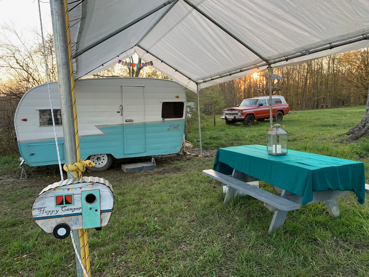 This is a cozy camper, sitting in our back yard facing our country wooded property, very quiet. Very nice view of the woods. Very nice area for a fire to sit around. No winter rentals. About 7 miles from Chautauqua institution, 2 miles from Chautauqua lake and 5 miles midway park. 8 miles from Lake Erie and wineries, 9 miles from lily dale. Check out our other campers as well.
