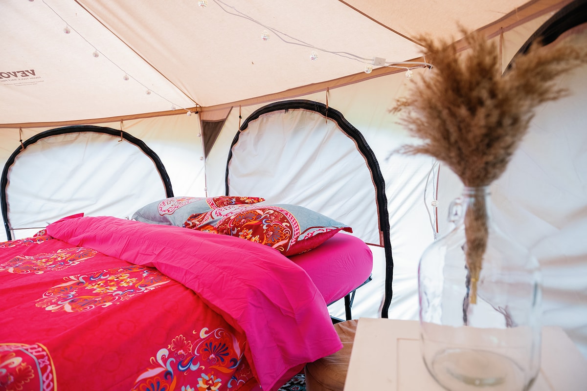 Monarch is one of three bell tents at Wild Garden Glamping in the amazing Cook Forest State Park area. This bell tent features two queen beds with memory foam copper cooling mattresses. Electric charging inside the tent as well. The color scheme suggests the orange and black of one of our favorite pollinators, the monarch butterfly! Come bring your family to this luxurious camping experience and explore Cook Forest from a place of style! Be sure to check out our wildflower gardens as well!