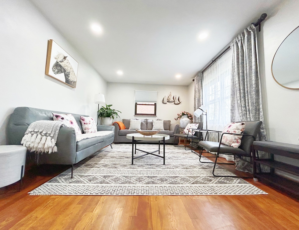 Comfy 3BDs 2 BA house near to downtown Pittsburgh!! 2 minutes from the highway. 20 minutes to the Pittsburgh airport. 2 bedrooms, living room, main bathroom, dining room,& kitchen are on the main floor. Bedroom 3, bathroom 2 are in downstairs. The whole house can sleep 9 people. Fully equipped kitchen. 8 seat table in the dining room. New & updated house. Hardwood floors. All furniture,beds and bedding are NEW! 1-car garage and level driveway. 300 mbps speed of internet for remote worker.