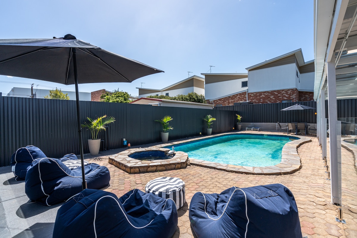LUXE HOUSE HENLEY — Unwind in your own heated private pool/spa and sauna just steps from the ocean. Watch sunsets, hear the waves, and stroll into Henley Square for cafés, restaurants and coastal vibes. ☀️🏖️ - Jaw-Dropping 2 Storey Beachfront Opulence - Opulent Feel With 3.5m+ Ceilings! - Heated Pool/Spa & Infrared Sauna - Pool Table & Pac-man Game Machine - Filtered Tap Water - Fast Wifi - 5 Minute Walk To Henley Square/All Cafe's & Restaurants - 5-10 Minutes To Airport | 15 Minutes To City
