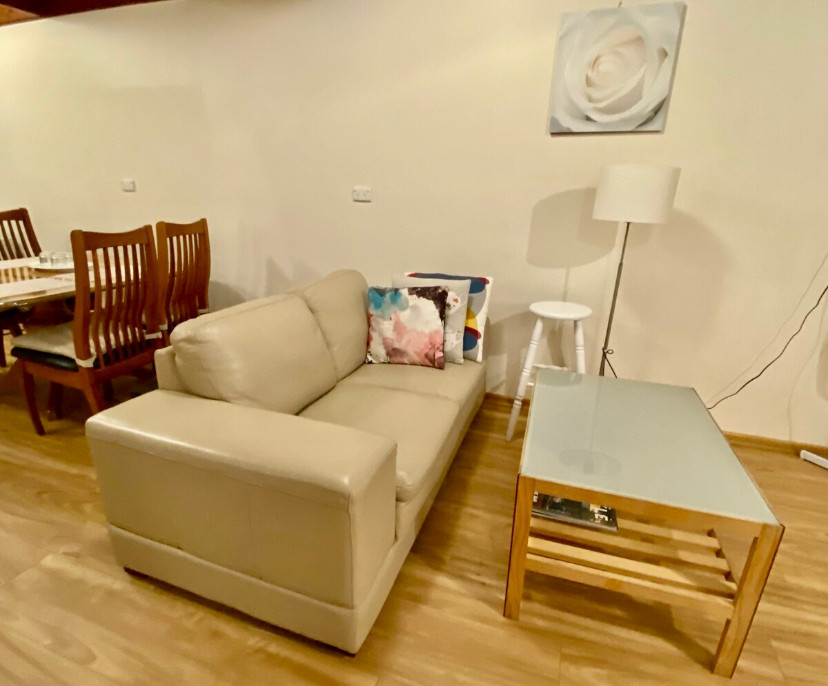 A newly built, modern, self contained flat behind the main house. The bedroom has a queen bed and large flat screen TV, separate lounge area with large flat screen TV. There is also a fully equipped kitchen with a table and chairs. The bathroom is spacious with a shower, two wash basins and toilet Access to the flat is separate from the main house, and so guests can come and go when they please. Please note that is a one-time fee of $50 applies for accommodating your dog during the stay.