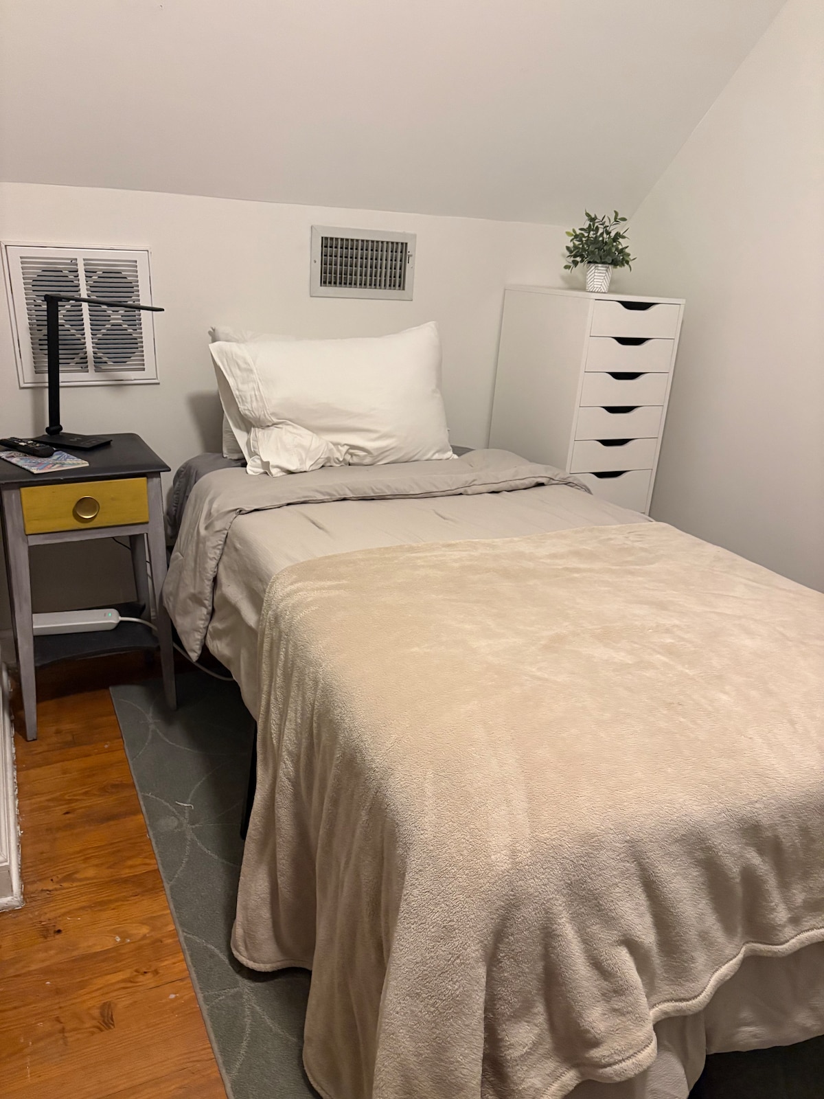 Welcome to a quiet retreat in Allentown, PA, ideally situated on Hamilton Blvd, the main drag near major highways, yet offering a peaceful escape. This 2-bedroom, 1 bath, 950 sq ft apartment is on the lower level of the beloved "Little Blue Guest House" and includes a king bed in one room and a full bed in the other, accommodating up to four guests. It has a fully stocked kitchen and bright south-facing egress windows to make your stay truly comfortable while being close to everything.