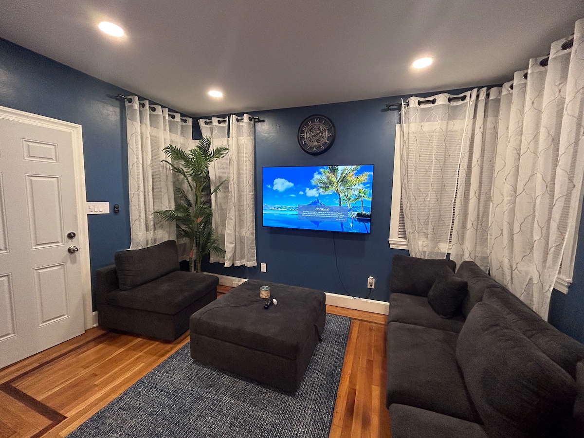 Welcome to a quiet retreat in Allentown, PA, ideally situated on Hamilton Blvd, the main drag near major highways, yet offering a peaceful escape. This 2-bedroom, 1 bath, 950 sq ft apartment is on the lower level of the beloved "Little Blue Guest House" and includes a king bed in one room and a full bed in the other, accommodating up to four guests. It has a fully stocked kitchen and bright south-facing egress windows to make your stay truly comfortable while being close to everything.