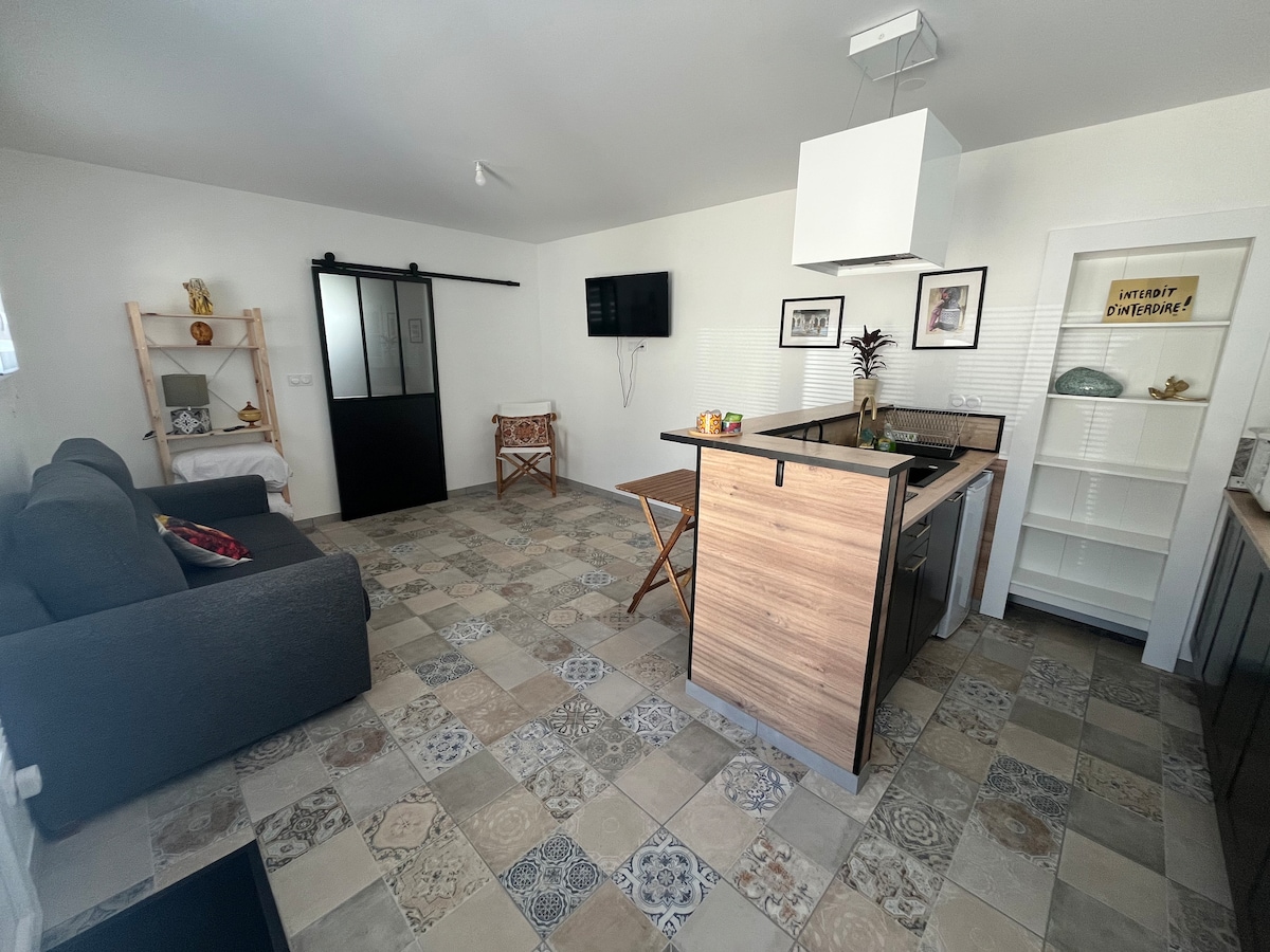 Au calme; studio indépendant de 27m2 tout confort moderne et vue imprenable sur la chaîne de Belledone, au milieu des vignes (Cuisine, SDB, Wifi, TV, Lit de 160) Dans le parc des Bauges, venez profiter d'une vue magnifique à moins de 40 min des premières stations, à 20 min de Chambéry, 45 min de Grenoble, aux portes de l'Italie et de la Suisses. Vous recherchez un logement au calme entre lacs et montagnes pour une nuit ou plus? Cliquez en bas à droite pour voir nos disponibilités
