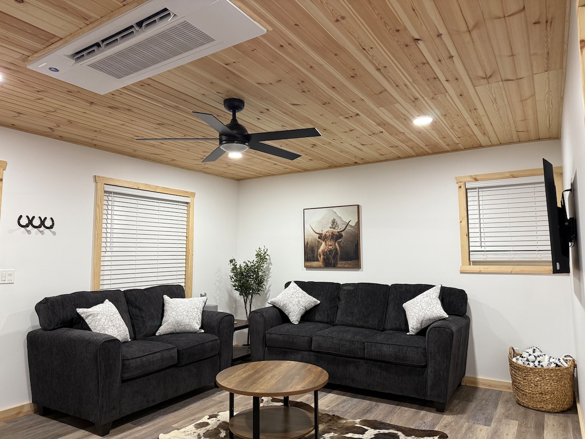 The BQ is nestled in downtown Minerva, two doors down from Sandy Springs Brewing Co. Come stay in luxury in our historic 1800's 2nd floor studio. Equipped with high end custom finishes top to bottom. Original brick walls surround you with exposed beams, warm finishes, a copper kitchen sink, and a digital rain shower with body jets. Furnished with a king size bed, oversized leather chesterfield chair and a couch with a full size memory foam sleeper bed. You won't want to leave!