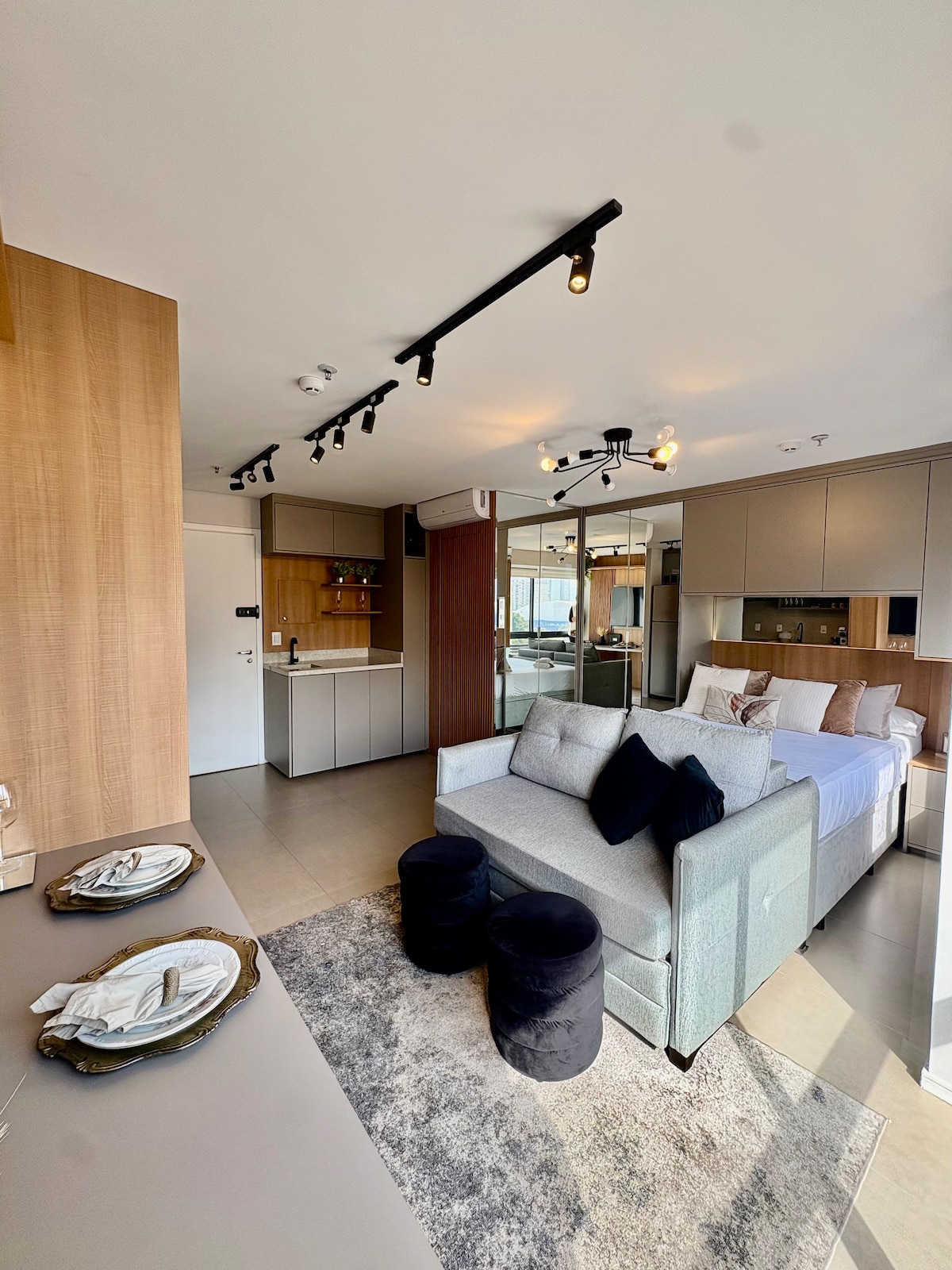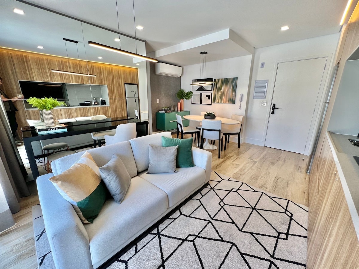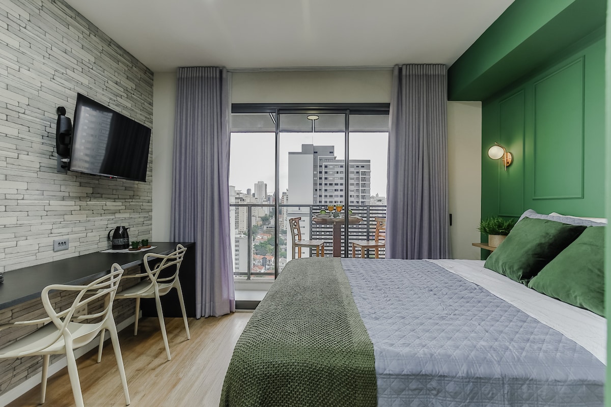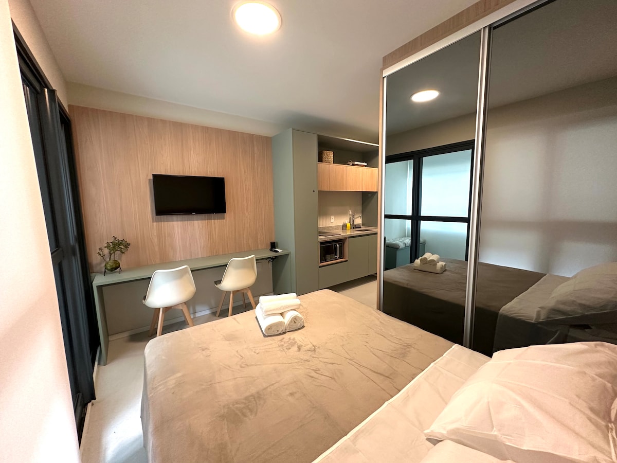 Brand new apartment, with a contemporary style, of a high standard and very well located, with a privileged view of Allianz Parque. Next to shopping malls, various businesses, means of transport, parks, tourist attractions and business buildings. The studio is complete, with a comfortable queen bed, Smart TV and Internet. Kitchen with all utensils, cooktop, refrigerator and microwave. With parking (rotary). Close to everything, cozy, perfect for experiencing fantastic moments.
