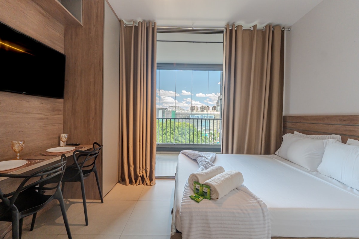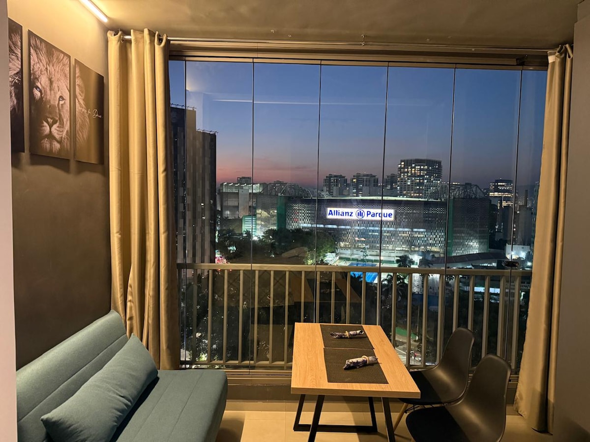 Com vaga de Garagem , Apto novo e muito aconchegante, Curta uma experiência elegante neste lugar bem-localizado, próximo ao Allianz Parque, 3 minutos a pé . Ao lado de diversos comércios, Shoppings, Teatro, meios de transporte, parques, pontos turísticos. Aproveite um apartamento moderno com Vista para o Allianz, cozinha compacta e completa, cama queem além de outras comodidades. Tenha a segurança de um condomínio com portaria 24h, lazer super completo. Mais que hospedagem, uma experiência .