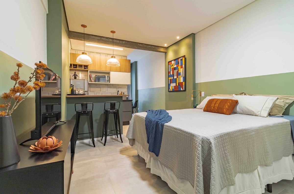 Relaxe neste espaço calmo e cheio de estilo. Studio completo com banheiro privativo, cozinha, geladeira, microondas, Smart TV, Wi-fi, varanda com vista maravilhosa. Condomínio com espetacular estrutura com piscina, academia, co working, lavanderia. Excelente localização, muito próximo ao Allianz Park, supermercado, farmácias. Local de fácil acesso.