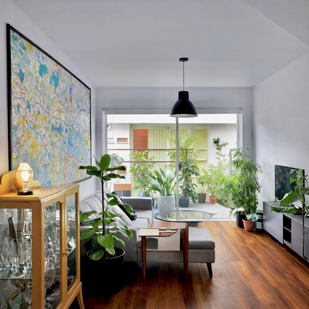 绿意盎然的房屋里的当代艺术