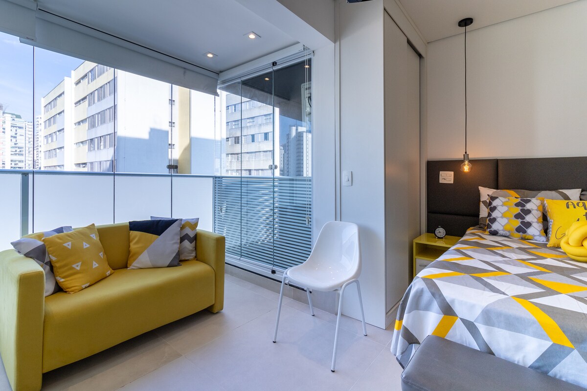 Enjoy the bohemian and artistic Vila Madalena, full of bars, restaurants and cafes. You can get to know the region or even take a tour to city parks with a bike, avaiable free of charge. Will you come to work? Focus on it at the confortable table facing the green balcony with a beautiful view of the tree tops. After all, enjoy the gym, poll, sauna and snooker room for your complete leisure.