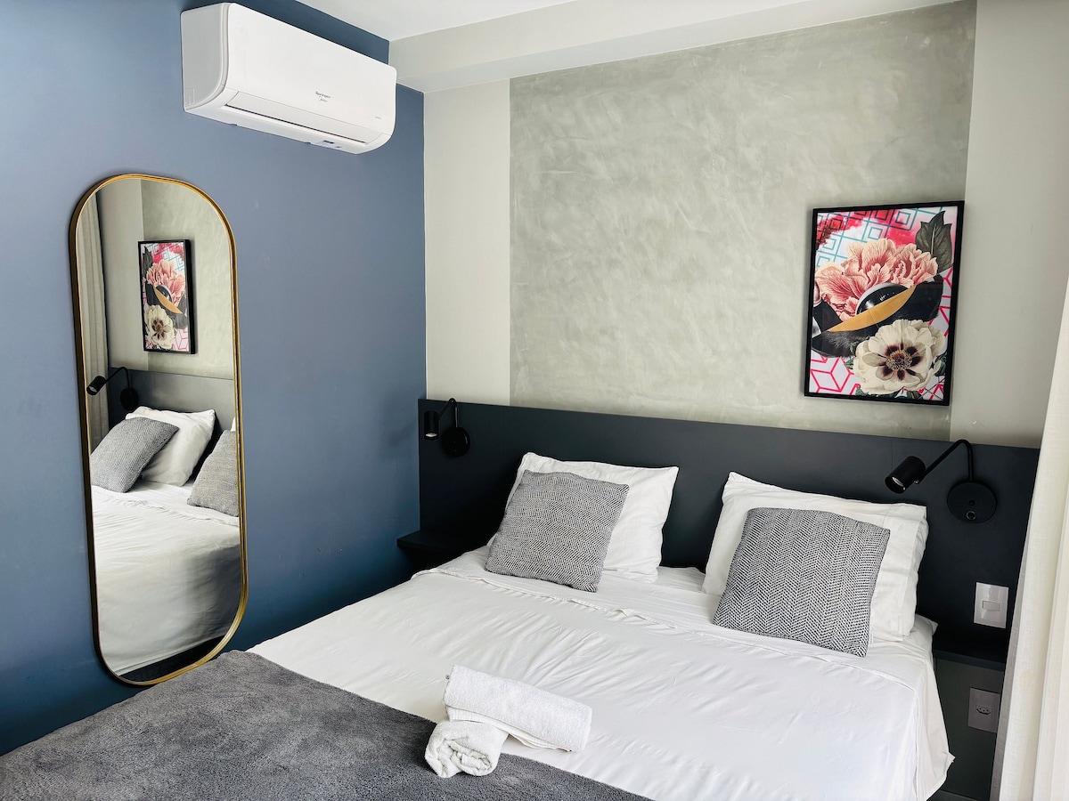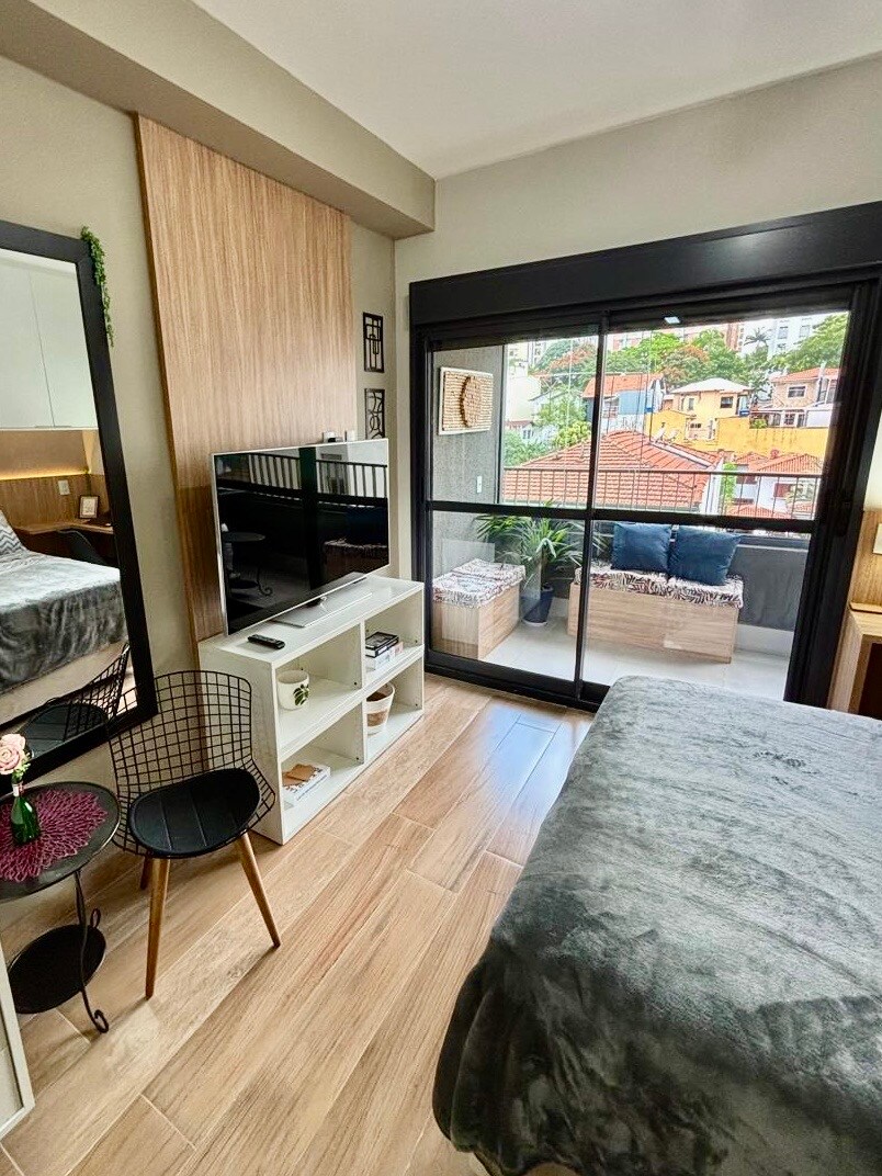 A unique space. Have a true Paulistana experience! Flat with 44m2, 1 bedroom with double bed (noise-resistant window), living room with 65p TV, Wifi, kitchen, new and renovated apartment, balcony, free parking, close to several shopping centers, convenience stores, fantastic restaurantes, in the coolest and most famous neighborhood of São Paulo, close to Subway (400 meters) , beautiful view of Av Paulista. Accommodates up to 3 people (1p in the living room sofa-bed). 24h reception desk.