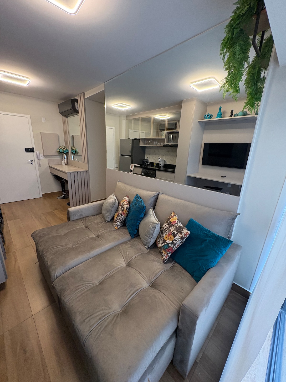 Brand new apartment, with a contemporary style, of a high standard and very well located, with a privileged view of Allianz Parque. Next to shopping malls, various businesses, means of transport, parks, tourist attractions and business buildings. The studio is complete, with a comfortable queen bed, Smart TV and Internet. Kitchen with all utensils, cooktop, refrigerator and microwave. With parking (rotary). Close to everything, cozy, perfect for experiencing fantastic moments.