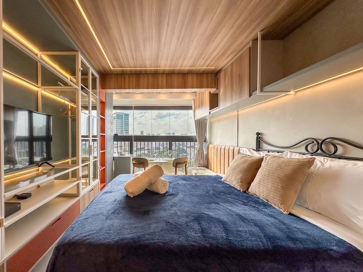 Luxuoso Studio com Mezanino em Perdizes SP. Descubra a sua estadia, em um studio super moderno e totalmente equipado com utensílios de extrema qualidade e bom gosto, localizado em uma das melhores regiões de São Paulo, a 500 metros do Allianz Park, Shopping Bourbon, Hospital Albert Einstein, Vila Madalena e próximo de restaurantes e bares. Consegue fazer tudo a pé. Este espaço é a combinação perfeita de conforto e sofisticação, ideal para quem busca um ambiente elegante e funcional.
