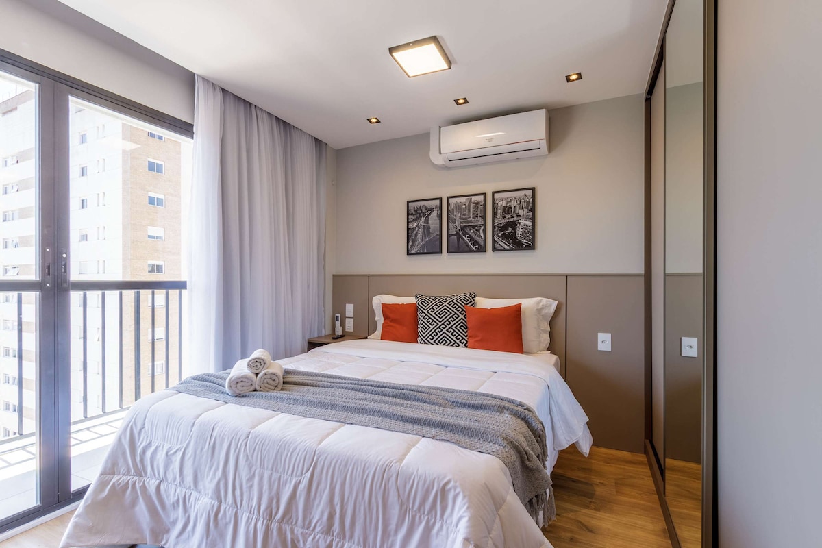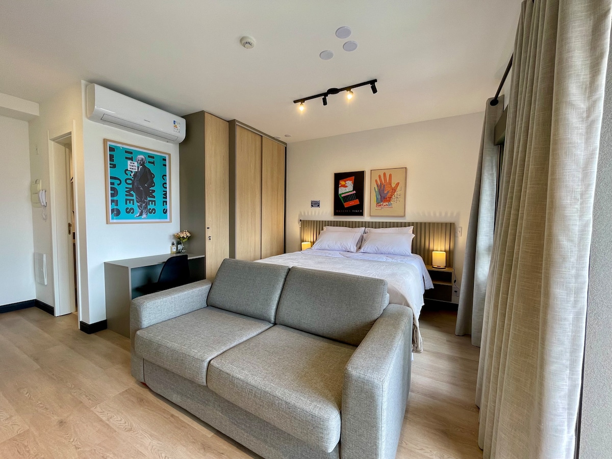 Brand new apartment, with a contemporary style, of a high standard and very well located, with a privileged view of Allianz Parque. Next to shopping malls, various businesses, means of transport, parks, tourist attractions and business buildings. The studio is complete, with a comfortable queen bed, Smart TV and Internet. Kitchen with all utensils, cooktop, refrigerator and microwave. With parking (rotary). Close to everything, cozy, perfect for experiencing fantastic moments.