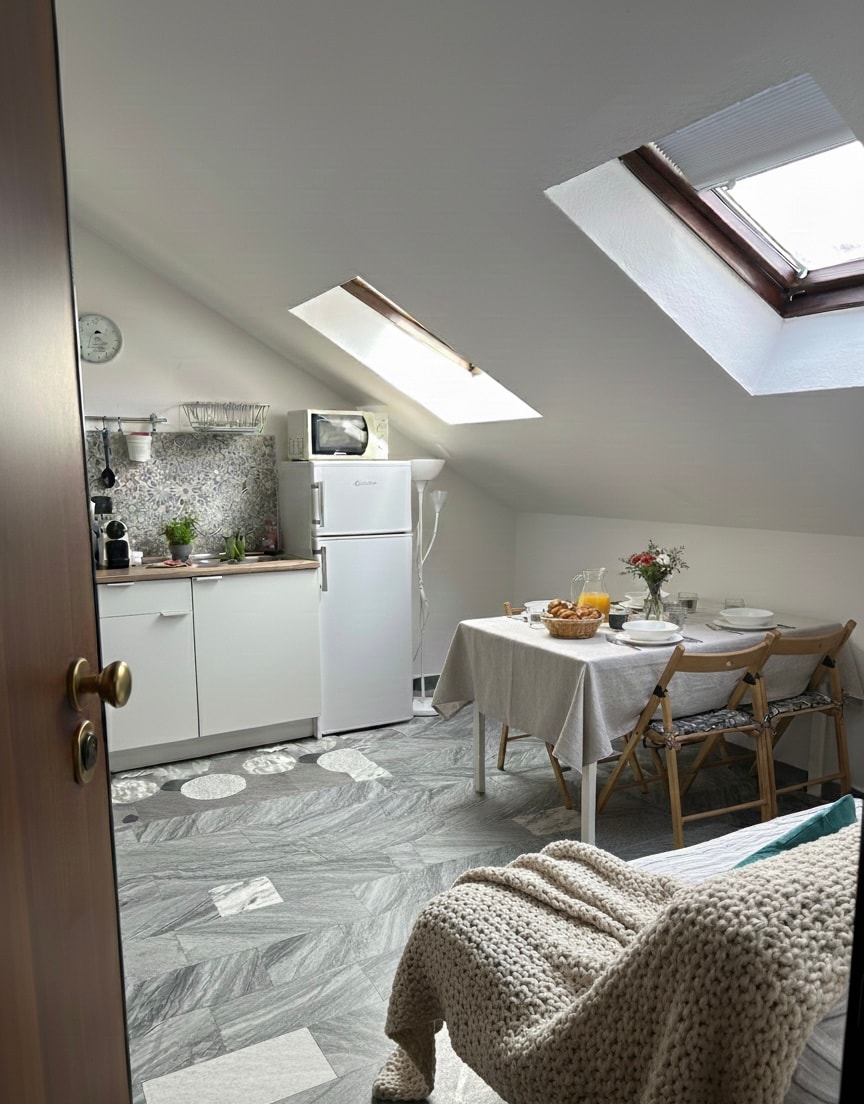 Ampio bilocale appena ristrutturato composto da camera da letto, cucina abitabile, ingresso e bagno. Accogliente ed elegante, l’alloggio è dotato di tutti in confort: smart TV 55 pollici e connessione fibra gratuita. Lavatrice disponibile per soggiorni lunghi. Letto singolo con rete pieghevole da posizionare nella camera matrimoniale. Disponibile lettino da campeggio completo di lenzuola e seggiolone. Alloggio sito al primo piano senza ascensore.
