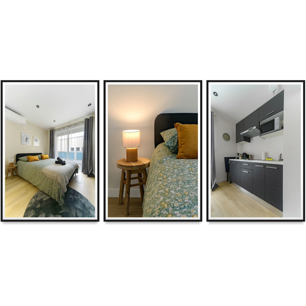 Welcome to your elegant and bright apartment in the heart of Vichy! - Refurbished 32m2 apartment, ideal for 2 travelers. - Fully equipped kitchen, bathroom with shower, flat screen TV, and Wifi. - Close to parks (1min), supermarket (2min), Opera, and thermal baths (5min). - Includes complimentary household linen (sheets and towels). - Flexible self check-in with key box. - Free outdoor parking available 500 meters away.