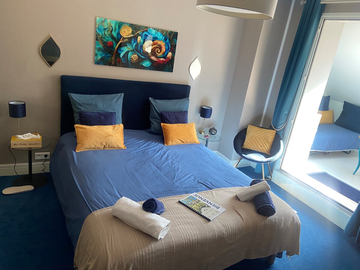 Très belle F1 de 43 m2 aménagé avec soin situé centre ville de Moulins à 5 minutes à pied de la gare et 30 mn du pal. Boite à clés permettant une arrivée tardive. Rénové et meublé avec goût , il est composé d'une chambre, un salon , une salle de bains et wc. Il permet 3 couchages grâce au lit 140 et un lit 90. Les draps et serviettes de bains sont fournis.