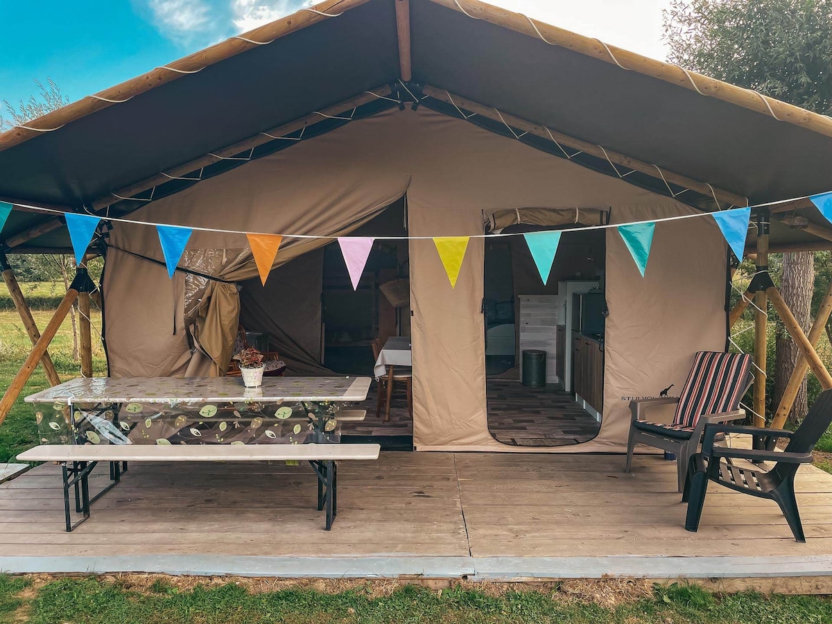 A really special and comfortable tent, for a very pleasant stay! Come to us to spend a quiet romantic time. Glamping La Fraventure is located just 7 minutes from Lac de Sidiailles. Swimming, tree climbing, giant zip lines, pedal boats, canoeing, hiking, climbing... Included: private dry toilet, private eco shower, wifi, shared kitchen and shared bathroom, trampoline, swimming pool On request: Breakfast at €10/pp (min 2 pers), cot, extra small matras, pasta, sometimes barbecue