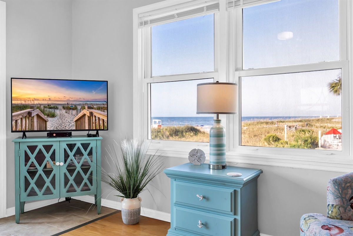 Enjoy beautiful ocean views right on the marsh front in the gorgeous, one of a kind, A-Frame farmhouse cottage in North Myrtle Beach, South Carolina. Enjoy coffee and your favorite beverages from the back deck while watching the sunrise over the Atlantic Ocean. Enjoy the peace and serenity of nature while watching the egrets fly by, listen to the oysters clamp down as the tide rises and falls, and hear the ocean waves. Common sightings include Bald Eagles, Painted Buntings, Hummingbirds & more!